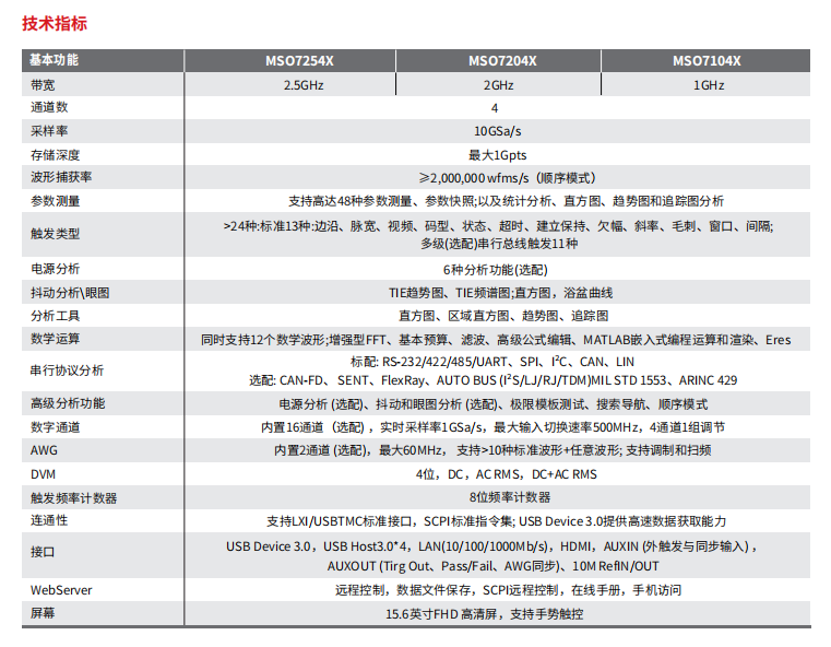 品牌:MSO7000X系列高带宽混合信号示波器,拥有非凡的性能指标,全面细致的分析功能,人性化的触控体验,助您在科技的海洋无限探索。搭载Win10 64位操作系统,为用户提供稳定可扩展的系统平台,通过提供示波器API接口,显著提升系统的智能化程度,满足用户需求