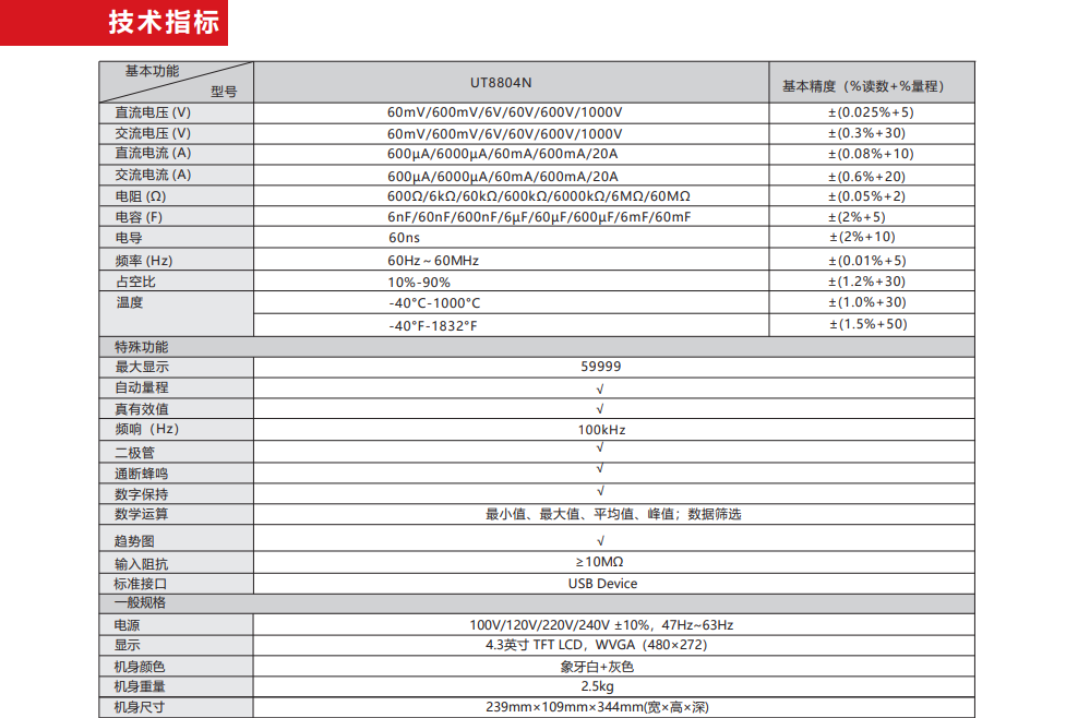 品牌:UT8804N台式数字万用表,最大59999显示,测量速率快,显示分辨率高,满足用户多功能、高精度、自动化的测量需求。