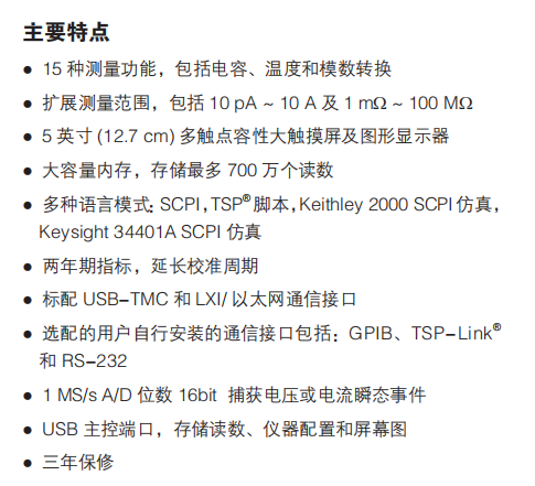 品牌:无需巨额投资即可获得高性能仪器。这款台式触摸屏 6.5 位数字万用表, 提供了包括瞬态捕获、数据可视化和分析在内的多种测量功能,超越了许多同价位的工业 6.5 位数字万用表。