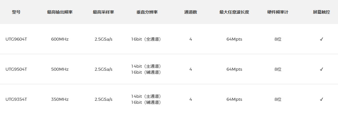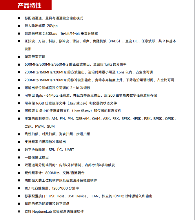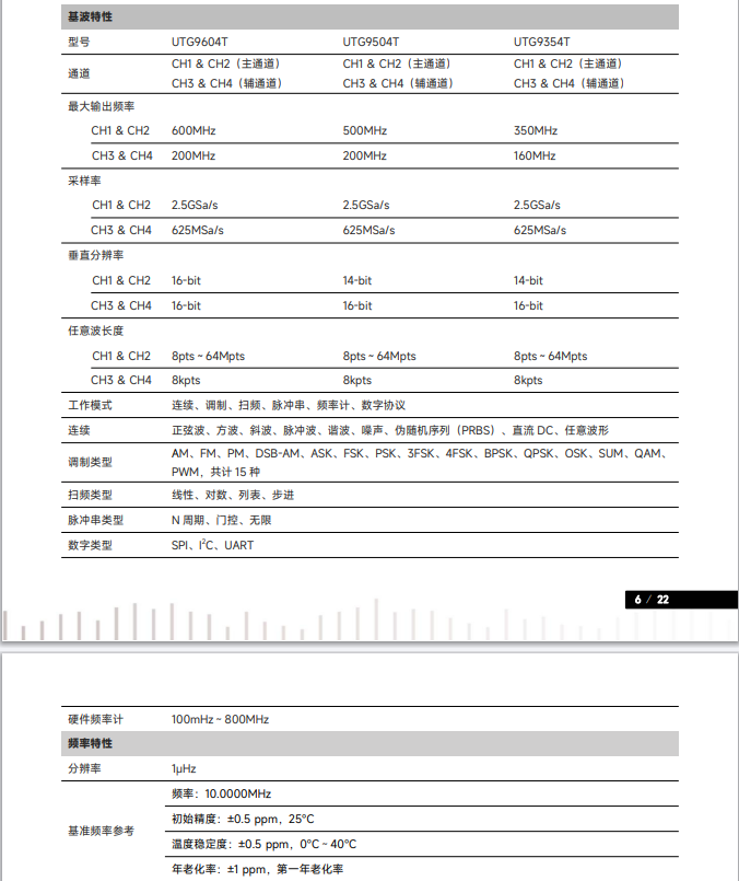 品牌:UTG9000T系列函数/任意波形发生器,使用DDS直接数字频率合成技术,可生成高精度、稳定、纯净、低失真的信号,还能提供高频率且具有快速上升沿和下降沿的方波。是一款高性能、多功能的四通道函数/任意波形发生器。