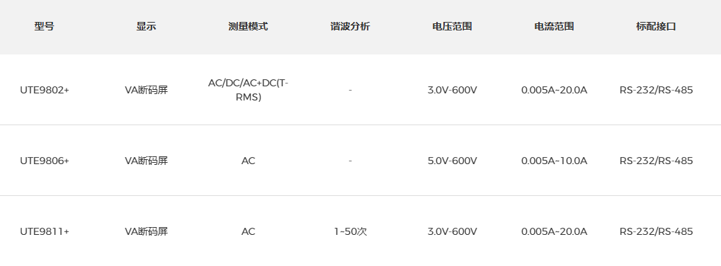 品牌:UTE9800+系列智能电参数测量仪采用高速CPU进行数据处理,仪器具有完善的功能、性能优越和操作简单的特点,能满足生产现场的高速测量,也能满足实验室和研发测量的需求。广泛适用于生产、测试、评价和科研等诸多领域。