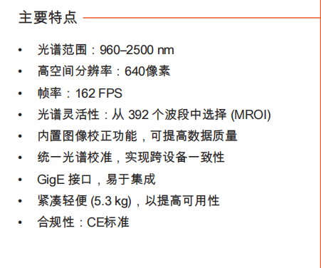 品牌:Specim SX25 是一款高光谱分辨率线扫描高光谱相机,专为追求极致精准材料分析的人士打造。具有内置图像校正和单元间统一光谱校准等先进功能,可确保在不同设置和用户之间获得可靠且可重复的结果。
